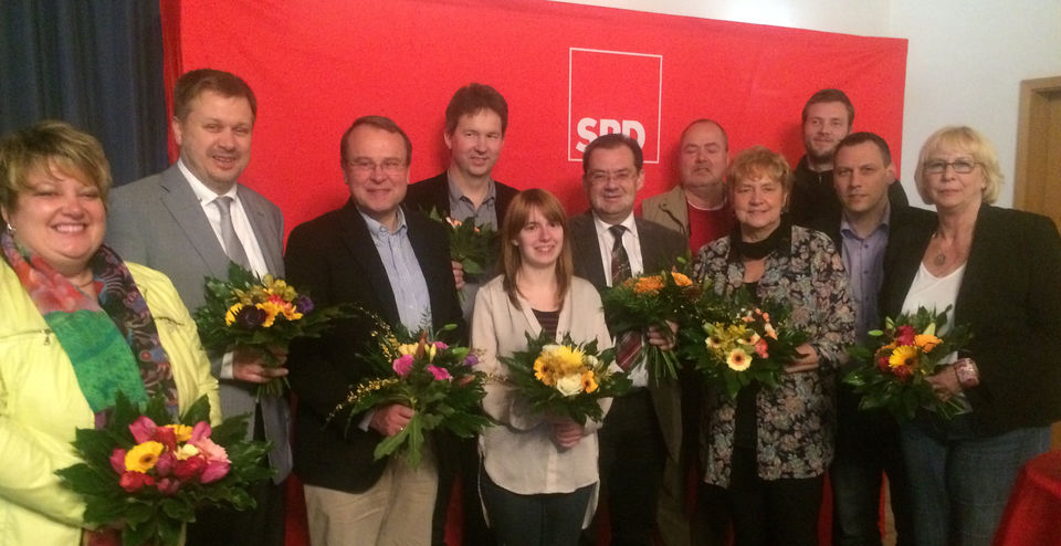 SPD UB-Vorstand Landkreis Oder-Spree, v.l.n.r.: Cornelia Schulze-Ludwig, Frank Steffen (UB Vorsitzender), Rolf Lindemann, Ralf Steinbrück, Julia Graetz, Jörg Vogelsänger, Hajo Guhl, Elisabeth Alter, Christian Stauch, Lars Wendland, Ingrid Siebke