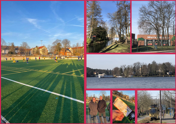 Die Schatten sind an einem Februarmorgen noch lang (Bild links). Es ist frischer als die strahlende Sonne vorgaukelt. Egal! Den eingefleischten Fußball-Fan Jörg Vogelsänger zieht es auf den Platz in Erkner. Mit von der Partie sein Abgeordenten-Kollege Wolfgang Roik aus Senftenberg (Bild Mitte unten). Es spielt nämlich Aktivist Brieske Senftenberg als Gast gegen die Heimmannschaft FV Erkner. Landesliga, wo es nach Ansicht von Jörg Vogelsänger noch Sport ist. Erkner hat in dem guten Spiel übrigens 1:0 gewonnen.