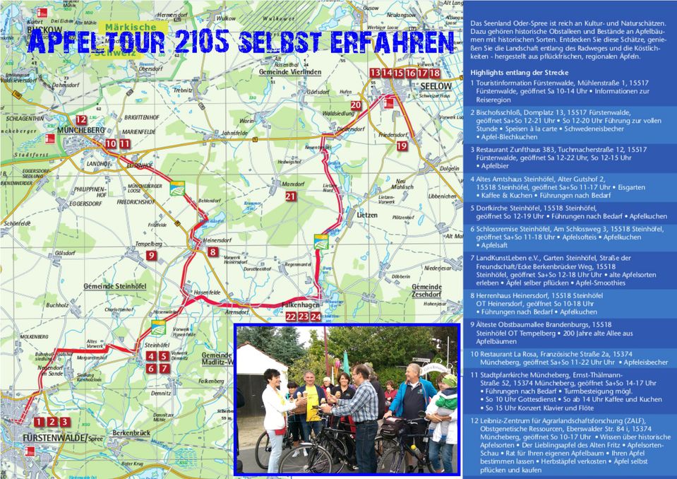 Die Tour lohnt sich auch nach der Apfelernte: Falkenhagen (Mark) über Steinhöfel nach Müncheberg bis zum Leibniz-Zentrum für Agrarlandschaftsforschung (ZALF). (Details siehe Karte des Tourismusverband Seenland Oder-Spree e. V.)