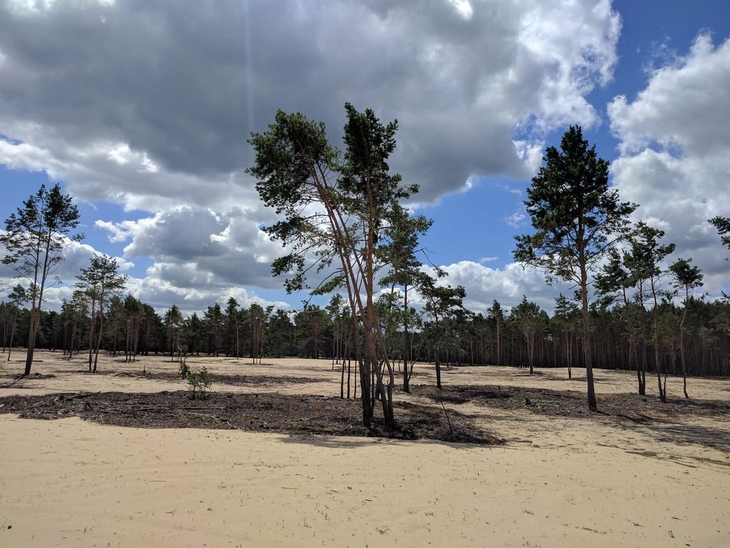 Mehr Licht und Wärme erreicht nun wieder den Sandboden, so dass die „Sahara“ hier zurückkehren kann: Offene Sandflächen werden zwischen den verbliebenen Kiefern entstehen und bekannte und typische Pflanzen wie das Silbergras oder der Bauernsenf Einzug halten. An diese sonnenerwärmten Standorte mit wenig Vegetation haben sich etliche Tierarten angepasst. Insbesondere für viele seltene Insektenarten sind sie ein wichtiger Lebensraum.