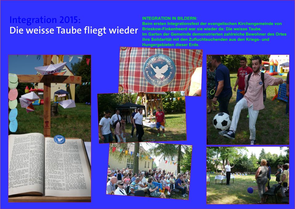 Es läuft vieles schief in dieser Republik: Gerade fertig ausgebaute Flüchtlingsunterkünfte brennen kurz vor der Eröffnung. Mit Demos versuchen Rechtsradikale Stimmung gegen die angebliche Überfremdung zu entfachen. Das kleine Integrationsfest der Initiative Buntes Brieskow-Finkenheerd macht Hoffnung, dass Menschenwürde und Mitgefühl (Empathie) unser Land langfristig prägen werden.