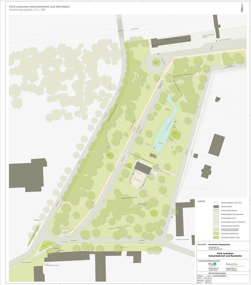 Fertig begehbar mit barrierefreien Zugängen soll der Park im Juli 2017 sein, damit auch IGA-Touristen ihn noch genießen können. Möglicherweise auch den fertigen Spielplatz noch. Baubeginn ist dort Ende Juli/August 2017.