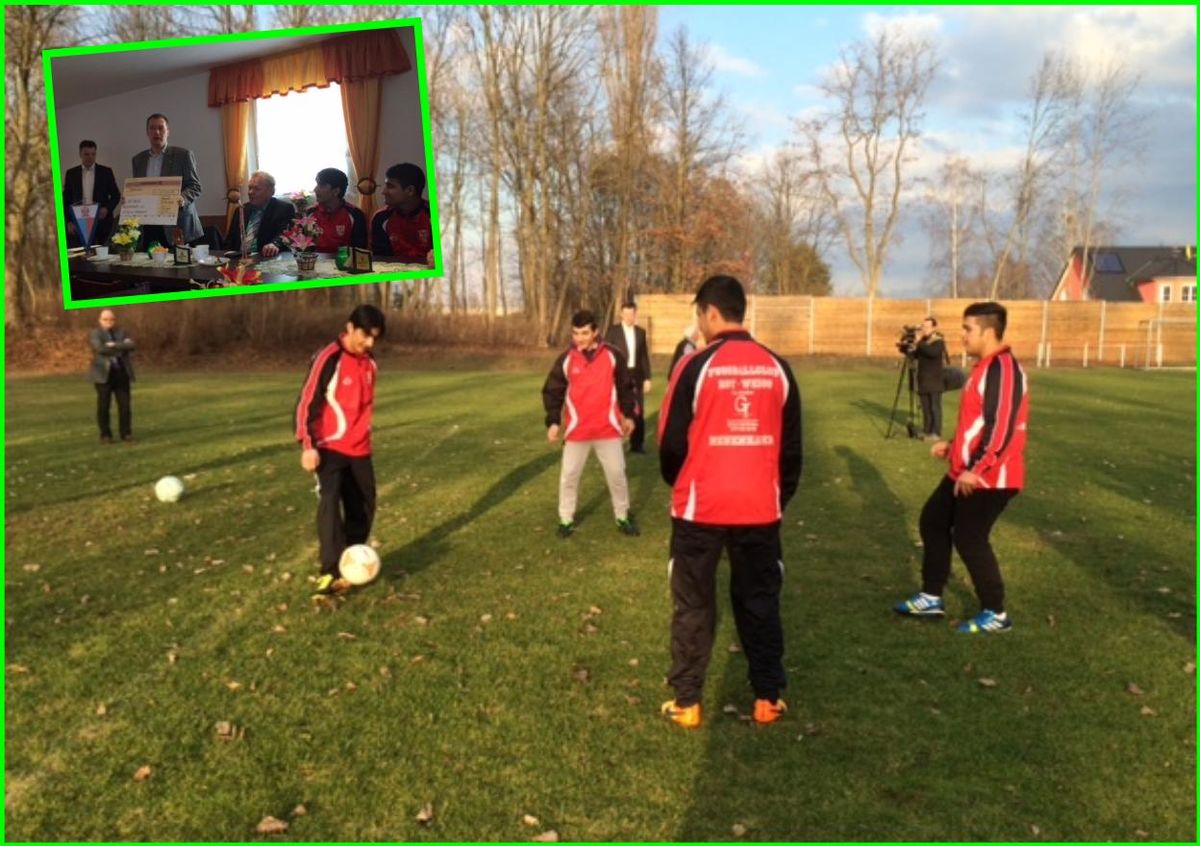 Die Spende stammt von der Egidius-Braun-Stiftung, die sich der Förderung von bedürftigen Jugendlichen im Sport angenommen hat. Von elf Jugendlichen, die ohne Eltern geflüchtet waren und beim IB in Neuenhagen in einer Wohngemeinschaft betreut werden, trainieren neun 16 und 17 Jahre alte junge Männer regelmäßig beim FC. Sie stammen aus Afghanistan und aus Syrien. Für sie heißt es in Neuenhagen Fuß zu fassen - und das tun sie nach dem Schulunterricht ganz aktiv und mit Freude bei „ihrem“ Verein. Betreut werden sie von ihrem Teamleiter Michael Karczewski und einem kaum älteren jungen Mann, der sich im bundesfreiwilligen Jahr befindet.