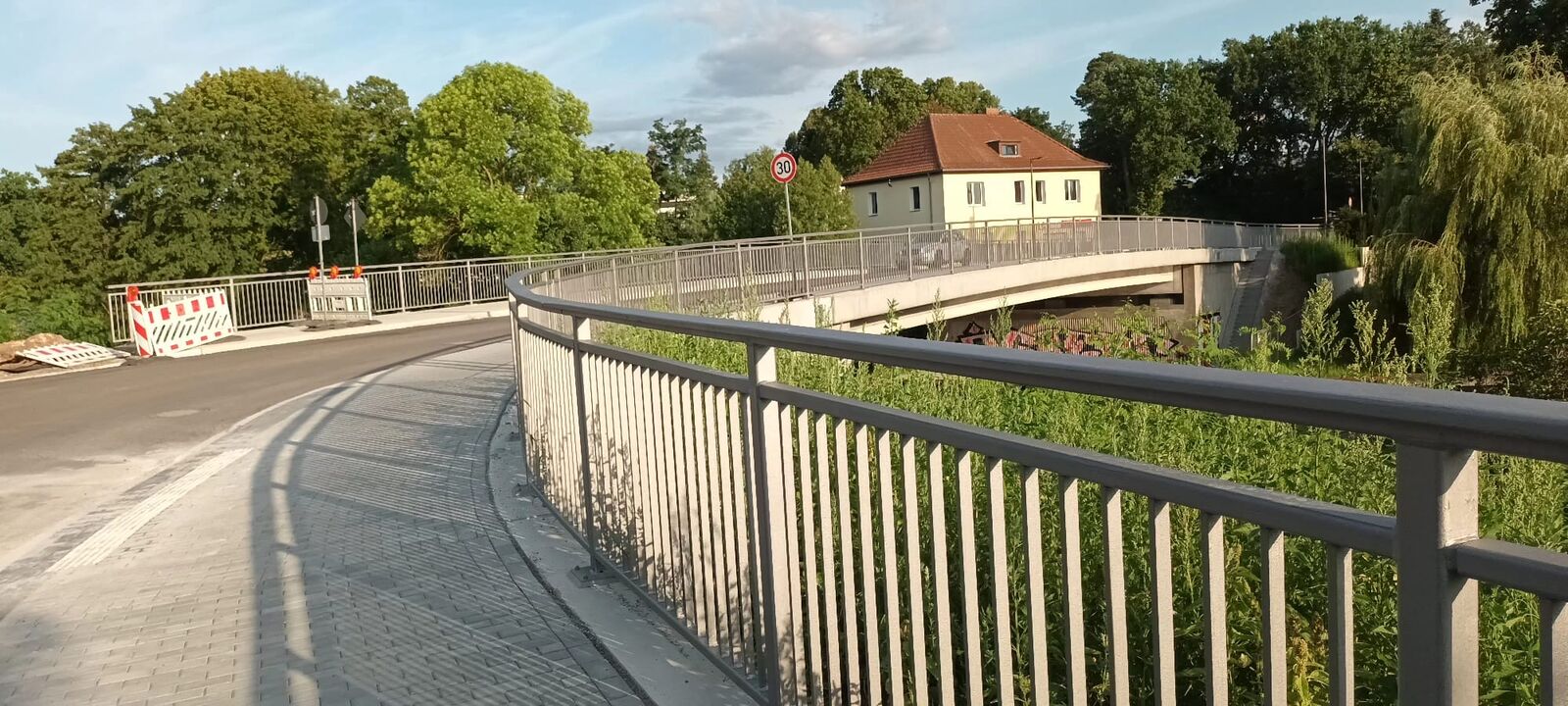 Bevor die Brücke jedoch in Betrieb genommen werden kann, wird der Kreuzungsbereich der Puschkinstraße mit der Straße Am Stolp in Rüdersdorf bei Berlin ab Montag, 15.07.2024, für zwei Tage voll gesperrt. Die Fahrbahn erhält von die letzte Deckschicht. Die Einfahrt in den kommunalen Bereich der Puschkinstraße ist auch nach der Freigabe der Brücke noch nicht möglich, da diese auf 50 m weiter gebaut wird. Der Weg ist jedoch frei für Radfahrer und Fußgänger.