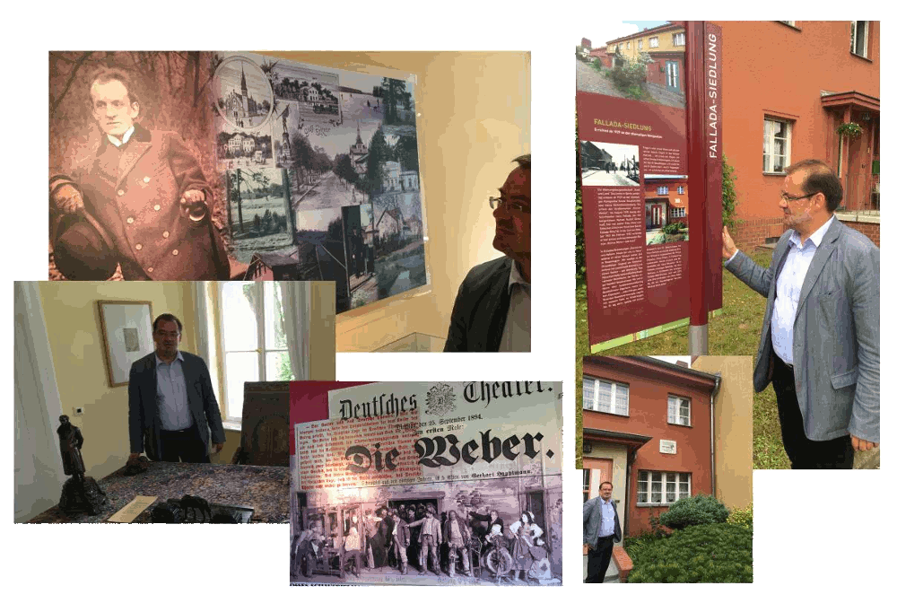 Im Gerhart Hauptmann Museum von Erkner (li); Fallada-Siedlung, Neuenhagen