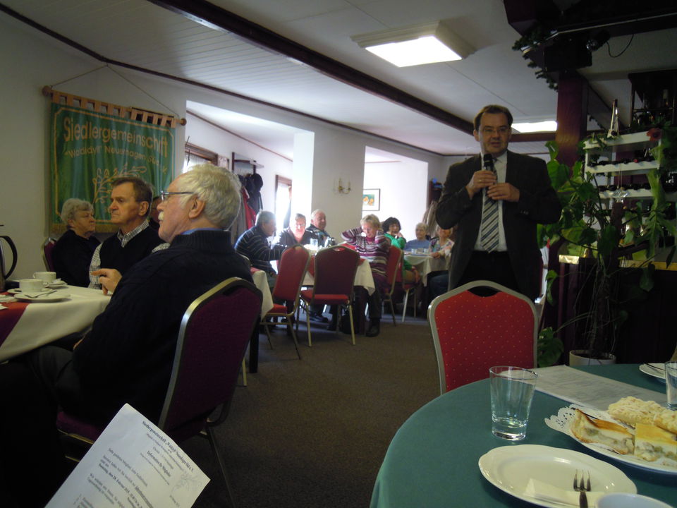 Der Vorsitzende des Siedlervereins Hans-Joachim Huth, sein Stellvertreter Dietrich Gaude, Beisitzer Dietrich Bahrs, Schriftführer Herrn Hofmann und Schatzmeisterin Lydia Schieke begrüßten Jörg Vogelsänger, führten dann durch die verschiedenen Tagesordnungspunkte.