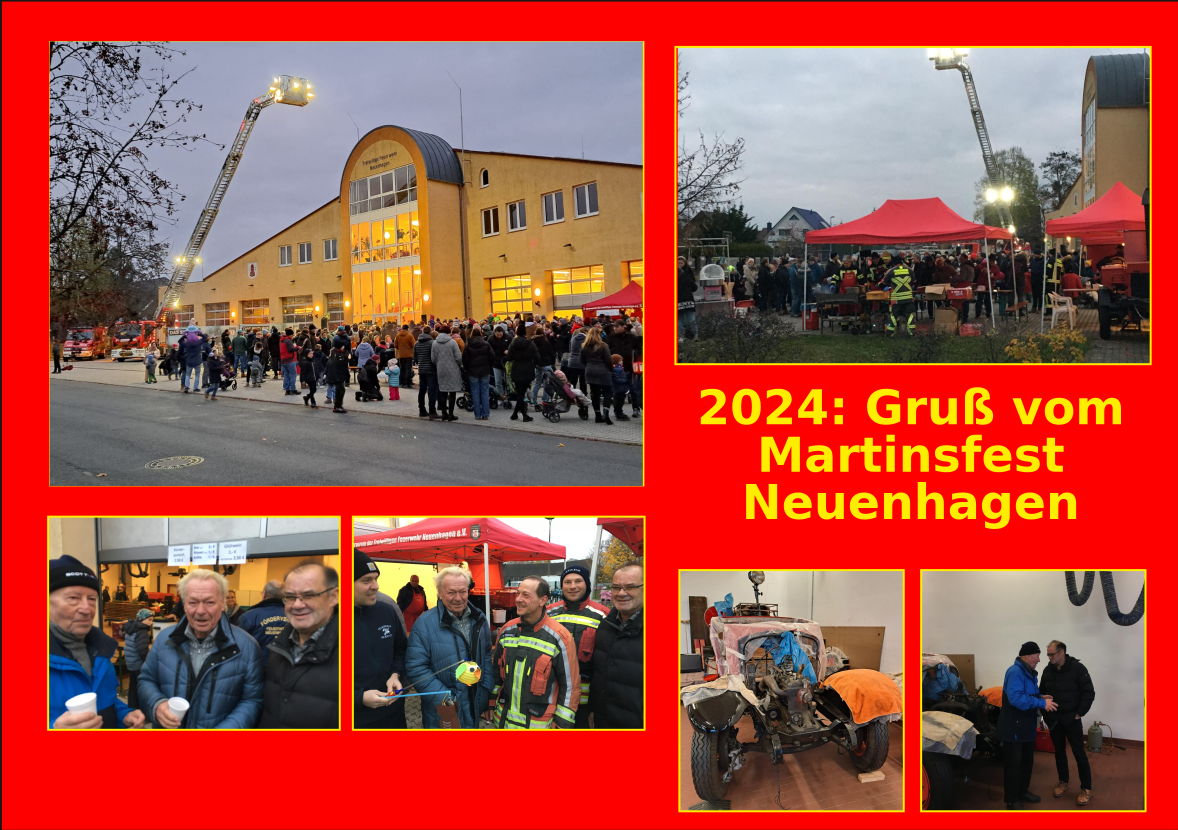 Aufgeregte Kleine schwirrten durch die Reihen der Erwachsenen. Diese wiederum erfreuten sich an Glühwein und sonstigen Leckereien. Die Lokal-Prominenz traf sich zum obligatorischen Plausch (Bild links unten). Das St. Martinsfest der Freiwilligen Feuerwehr von Neuenhagen gehört einfach zum vorweihnachtlichen Ritual. Jörg Vogelsänger (MdL in der Region) durfte nebenbei das "Schätzchen" der FFW bewundern (Bild rechts unten). Die halbfertige Karosse eines Oldtimers, der einst ausrückte, wenn es irgendwo brannte. Gutes Gelingen, dass er bald wieder im "Einsatz" sein kann. (gu)