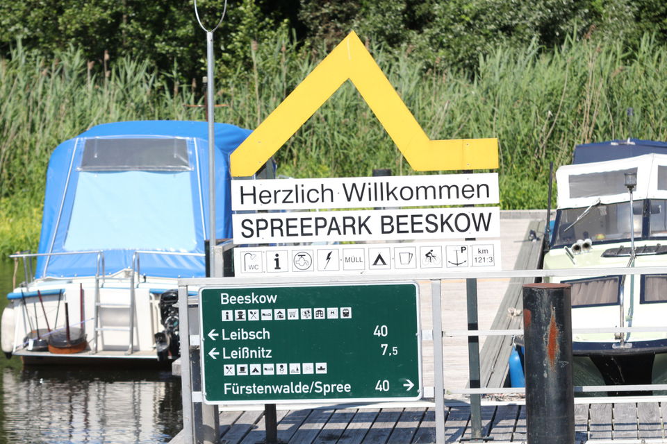 Wegweiser für Wasserwanderer, hier am Hafen von Beeskow (Foto: Katrin Riegel, Tourismusverband Seenland Oder-Spree)