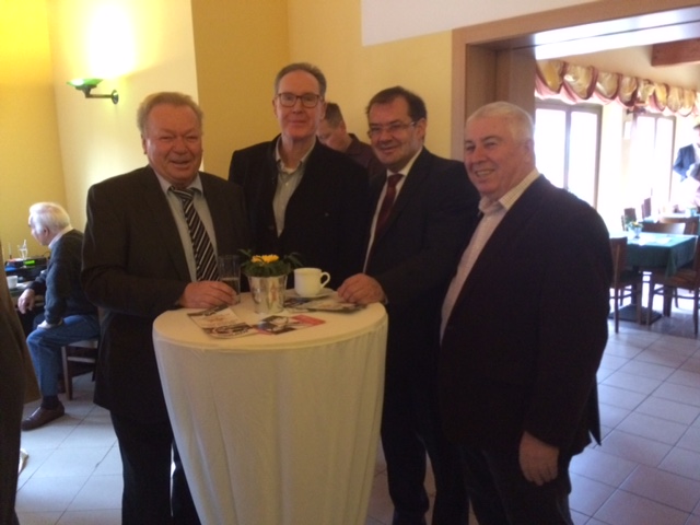 Jürgen Henze, BM, Martin Eichhorst, Vors. NTC 93e.V., Jörg Vogelsänger, Klaus Ahrens, Der Neujahrsempfang des NTC 93 e.V. fand im feierlich hergerichteten Neuenhagener Clubhaus, umgeben von gepflegten Tennisplätzen und geschmackvoll angelegten Rabatten, statt. Martin Eichhorst, Vorsitzender des Tennisclubs begrüßte Jörg Vogelsänger als prominenten Gast. Von der Gemeinde Neuenhagen schaute Bürgermeister Jürgen Henze vorbei. Beitrag und Foto: Marianne Hitzges