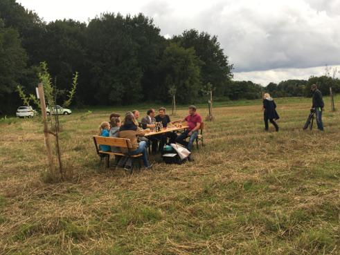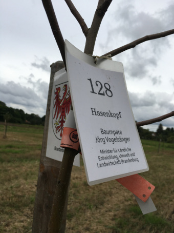Die 18 jungen Pflanzen (alles spezielle Sorten aus den Regionen plus einer bundesdeutschen und einer europäischen Sorte) haben den widrigen Wetterbedingungen der letzten Monate getrotzt und sind gut über die Runden gekommen. Jörg Vogelsänger als Vorsitzender Umweltministerkonferenz sollte jetzt beim „Ministersortengarten“ vorbeischauen und eine Erläuterungstafel ihrer Bestimmung übergeben. Machte er auch. Soweit das Ritual!