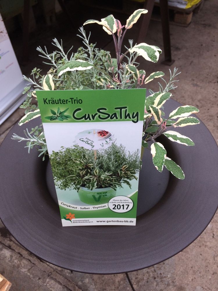 Die Pflanze des Jahres ist das Kräuter- Trio "CurSaThy" bestehend aus Currykraut, Salbei und Thymian. Die Pflanze des Jahres für Berlin-Brandenburg 2017 ist ein gutes Gewürz für Pizzen, Salate und Braten. Die Blumentaufe fand beim Pflanzenmarkt Flora-Arnold in Schöneiche bei Berlin in Gegenwart des Inhabers Ulf Arnold statt.