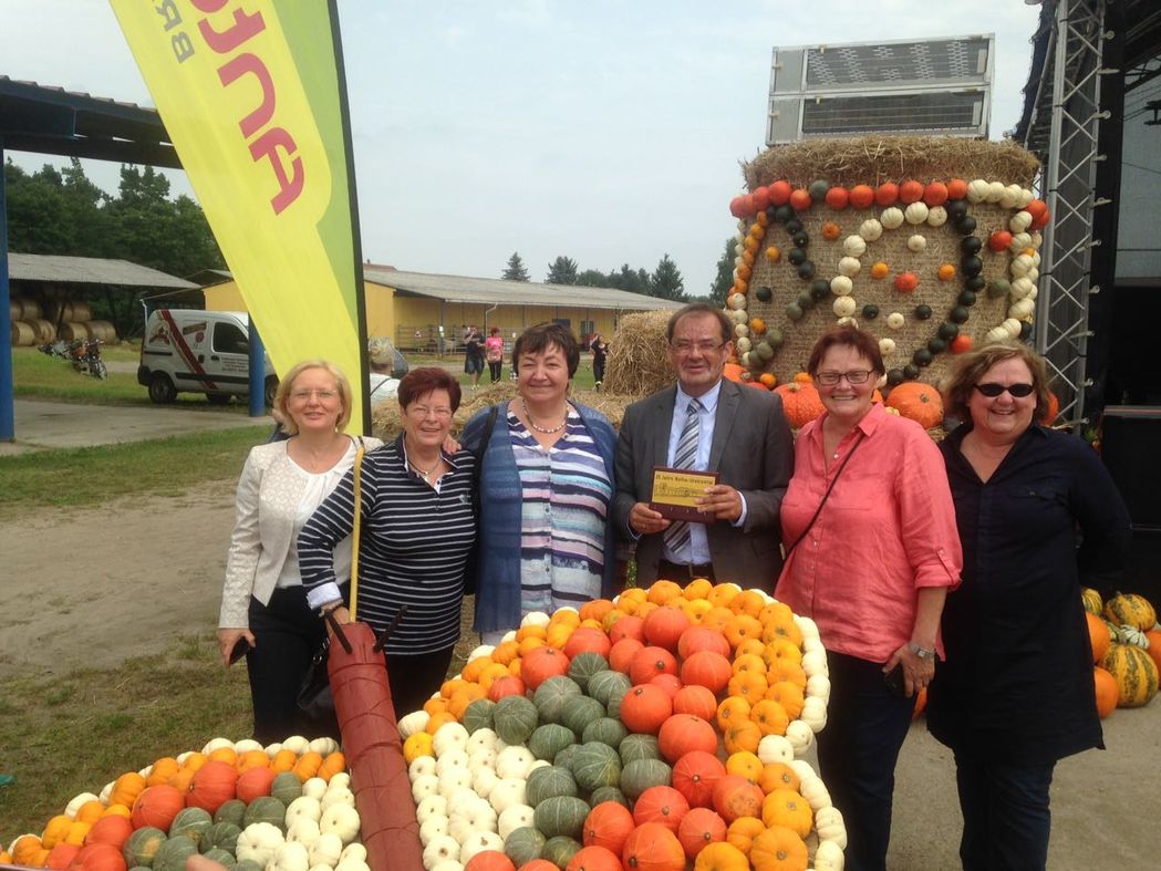 Gruppenbild mit Damen beim Erntedank in Ruhlsdorf: Jörg Vogelsänger u. SPD-Bundestagskandidatin Sylvia Lehmann (2. v.r.)