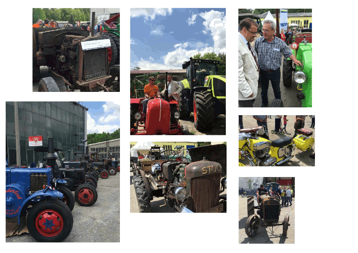 Rund 500 Fahrzeuge aus der Landwirtschaft und dem Straßenverkehr der letzten 60 Jahre sind am Müllroser Kirchsteig diesmal zu sehen. Landmaschinen mit Riemenantrieb für die Arbeit auf dem Feld. Die Trecker der 20er mit ihren Einzylinder-Diesel. Sie heißen IFA Pionier, Faso, Hanomag, Stock, Svoboda, Ursus etc. Meist jedoch Lanz Bulldog. Manche sehen aus wie neu. Etliche sind liebevoll restauriert, aber mit Patina der Zeit. Mit Absicht. Dazwischen einer mit dem Schild: Scheunen-Fund, Pionier RS01! (Foto oben links) Viele Bastelstunden steht dem Schrauber aus Leidenschaft bevor.