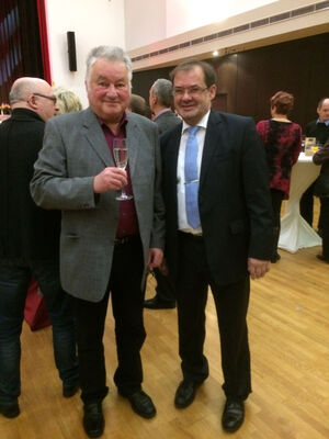 Foto: Harald Stapf, Vorsitzender des traditionsreichen Neuenhagener Männerchores „Frohsinn 1880“ und Jörg Vogelsänger auf dem Neujahrsempfang