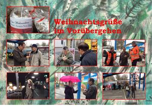 Er überreicht den Passanten ein kleines Präsent mit weihnachtlichen Naschereien. Dominosteine, Pfefferkuchen und Schokoplätzchen: Keine Massenware, sondern vom Konditor aus der Region gefertigt. Gespendet von den SPD-Ortsvereinen des Wahlkreises 31.