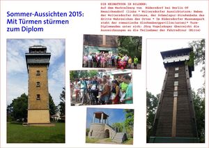 Schon zu Kaisers Zeiten war es für viele Gemeinden angesagt, einen Turm sein eigen zu nennen. Zuständig waren meist Verschönerungsvereine und zahlende Bürger. Jörg Vogelsänger (MdL) besuchte Mitte Juli auf einer zwölf Kilometer langen Fahrradtour drei Denkmäler im Wahlkreis 31. Den Woltersdorfer Aussichtsturm, den Wachtelturm von Hennickendorf und den Glockenturm im Museumspark Rüdersdorf. Der Lohn: Einen Muskelkater und das Turmdiplom, das jeder erhält, der die drei Türme an einem Tag besucht. Eine Reportage von Christian Stauch