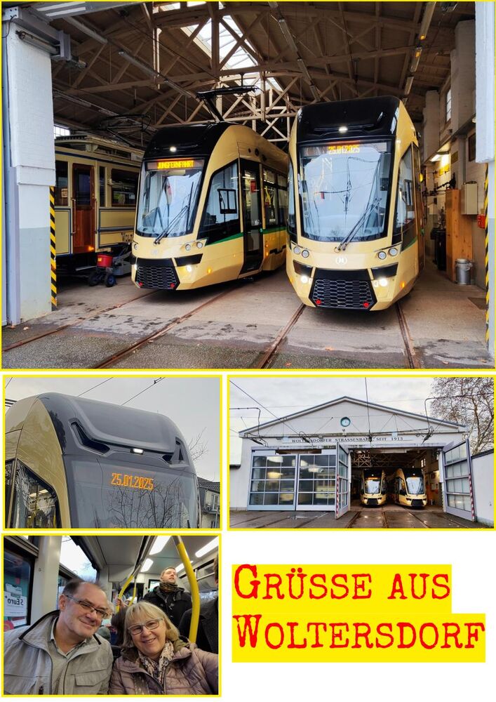 Seit heute fährt die neue Tram offiziell. Die Woltersdorfer Straßenbahn gehört zu den von der Streckenlänge 5,6 Kilometer kleinsten weltweit. Im Mai 1913 fuhr die erste Woltersdorfer Straßenbahn auf ihrer Spurweite von 1.435 mm. Zu Besuch kommen übrigens Eisenbahn-Fans aus aller Welt. Vollkommen klar, dass Jörg Vogelsänger und seine Frau Kerstin bei der Premieren-Fahrt mit dabei waren.