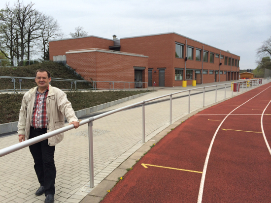 Jörg Vogelsänger auf dem Sportplatz von Erkner